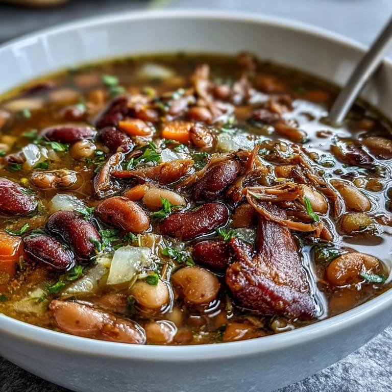Pin this My neighbor showed up at my door one November afternoon with a ham bone wrapped in foil, left over from her holiday dinner the week before. She mentioned something about waste and soup, then disappeared before I could protest. Standing there with this gift, I remembered my grandmother's kitchen and how she'd never let bone go unused. That evening, I threw together what I had—a bag of mixed beans, some vegetables, and her bone—into my slow cooker and let it do the work while I read on the couch.