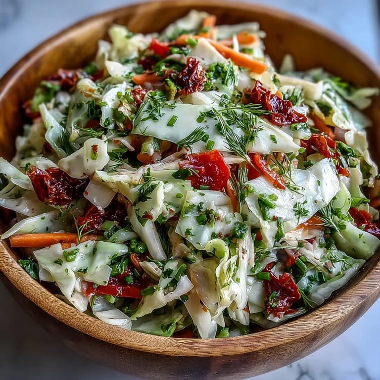 Pin this My neighbor showed up at my door one afternoon with a bowl of this salad, and I honestly didn't expect much from chopped cabbage. But one forkful changed everything: the crunch, the tangy sweetness from those sun-dried tomatoes, the way the herbs made it all sing. I asked for the recipe on the spot, scribbled it on the back of an envelope, and made it three times that week. Now it's my go-to whenever I need something fresh, fast, and impossibly satisfying.