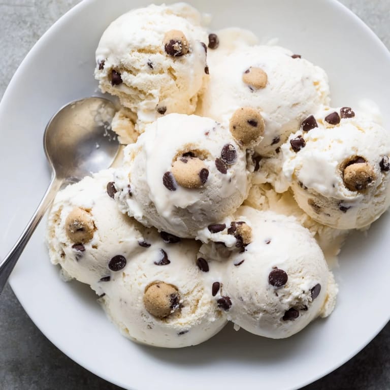 Pin this A creamy, protein-packed ice cream featuring whipped cottage cheese and bursts of edible chocolate chip cookie dough, perfect for a guilt-free frozen treat.