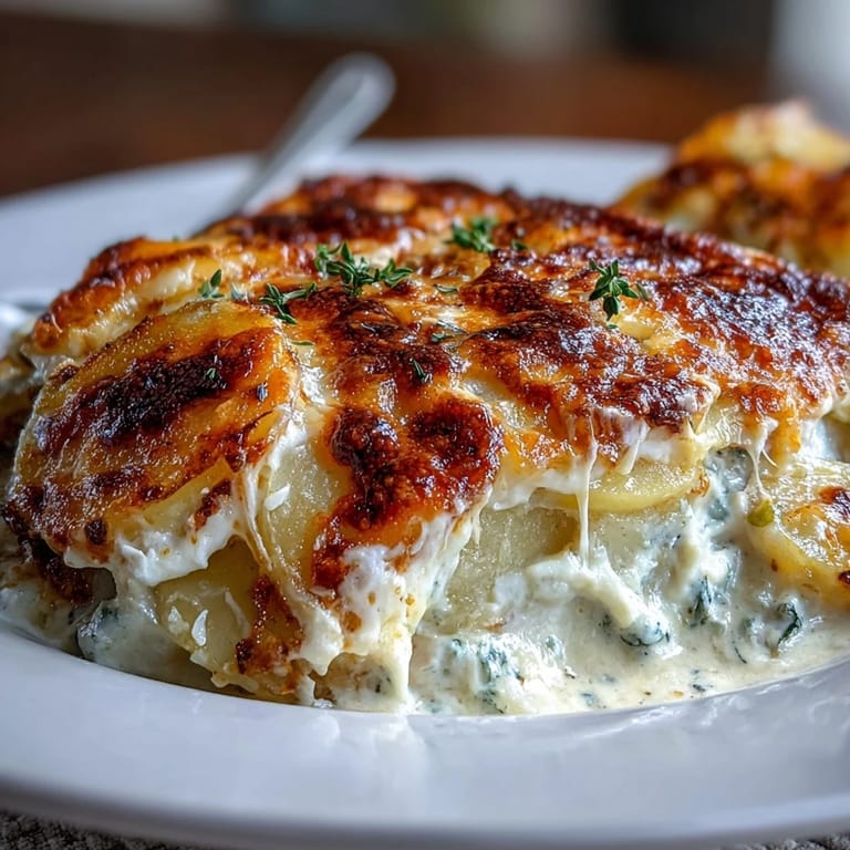 Using a mandoline slicer ensures evenly thin potato slices, which helps them cook uniformly. Warming the cream mixture gently infuses the flavors without curdling. Be sure not to boil the cream to preserve its silky texture. Resting the dish after baking allows the sauce to thicken and flavors to meld beautifully.