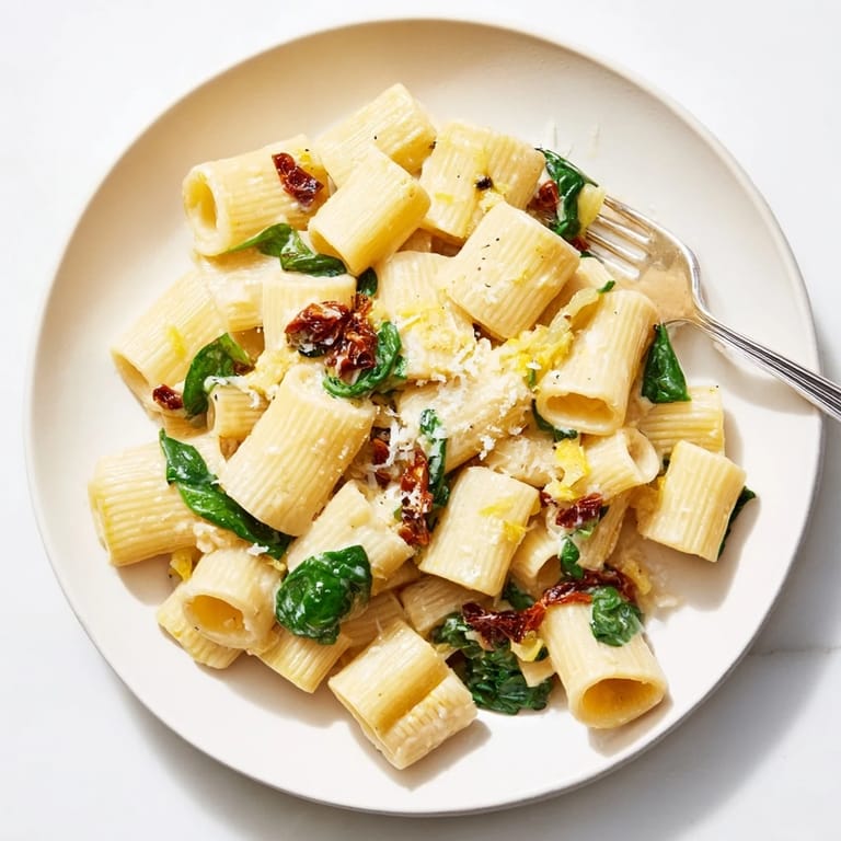 Pin this A luscious, protein-rich pasta dish featuring creamy cottage cheese, tangy sun-dried tomatoes, and tender spinach, tossed with al dente pasta for a satisfying and nourishing meal.
