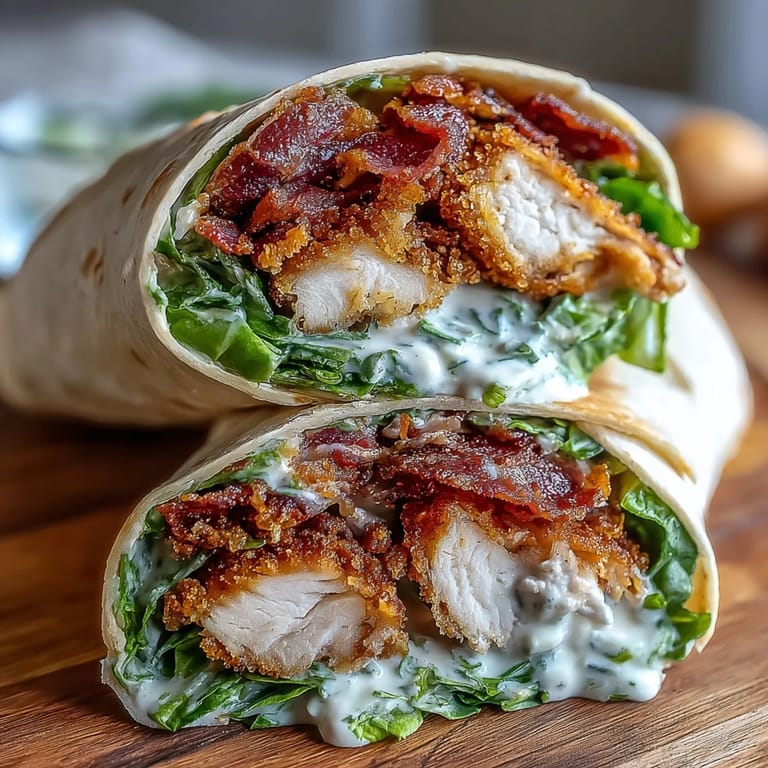 Pin this These Crispy Chicken Bacon Caesar Wraps are the ultimate comfort food made easy. Featuring golden-brown panko-crusted chicken thighs, crispy bacon, and fresh romaine tossed in creamy Caesar dressing, they are perfect for a satisfying lunch or dinner. Everything is rolled tightly in a warm tortilla for a portable meal that hits every flavor note.