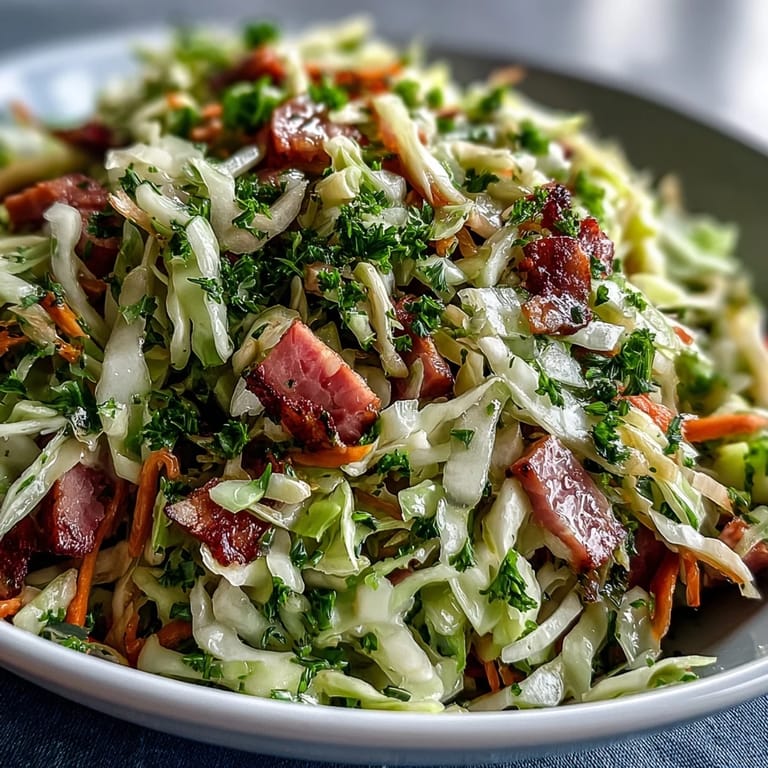 Pin this My neighbor Klaus invited me over on a crisp autumn afternoon, and what he pulled from his kitchen was this vibrant coleslaw that tasted like a German beer garden in a bowl. The first forkful hit differently than any coleslaw I'd made before—there was that sharp vinegar bite, the sweetness of honey, and then this smoky ham that made it feel almost like a salad that could stand on its own as a light meal. He laughed when I asked for the recipe, saying his mother made it every Sunday, and now I understand why.
