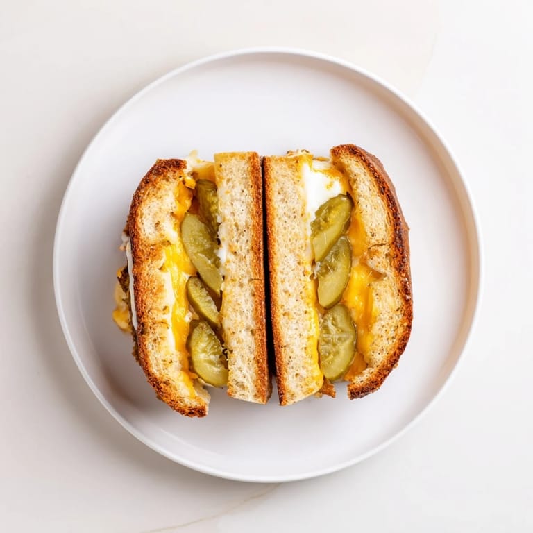 Pin this A decadent, melty grilled cheese sandwich with tangy pickles and buttery, crisped bread perfect for ultimate comfort food cravings.