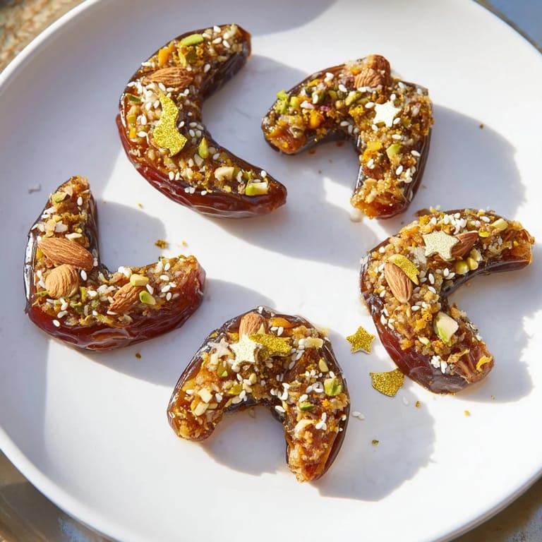 Pin this A stunning and festive platter featuring dates shaped into moons and stars, filled with nuts and citrus, and elegantly garnished for special occasions.