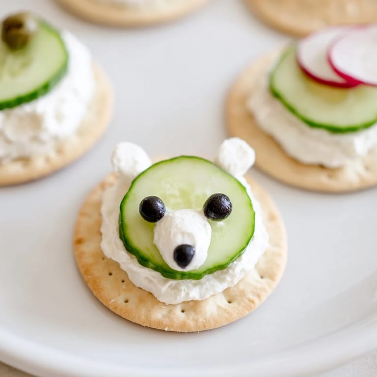 Pin this A whimsical, savory appetizer featuring cool cream cheese, crisp veggies, and crackers stacked to resemble polar bears on floating icebergs—perfect for parties or themed gatherings.
