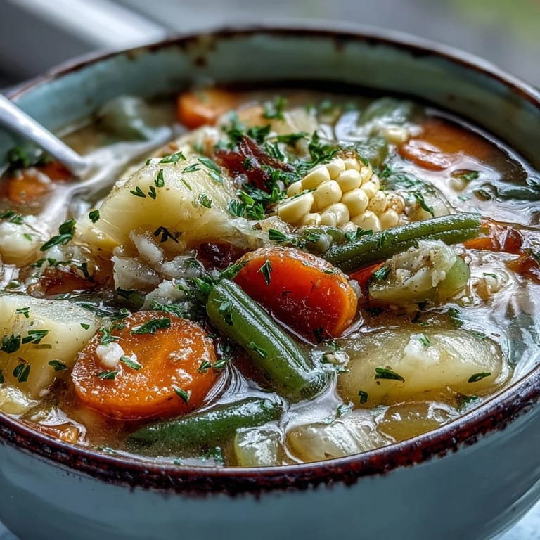 Pin this The snow had been falling sideways all morning when I remembered my neighbor Sarah mentioning this Amish soup recipe she swore by during blizzards. I shuffled to the kitchen in my thickest socks, the house already feeling colder, and decided this was the perfect day to try it. Something about the way she described it—vegetables simmering until they practically melt, cream swirling in at the end like a warm embrace—made it feel exactly right for a day when the world outside had disappeared under white. The pot bubbled away on the stove while I watched the snow pile up against the window, and pretty soon the whole house smelled like thyme and comfort.