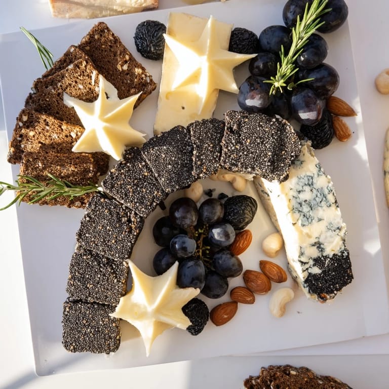 - Black Grapes (1 bunch): They're not just flavor—they're visual punctuation marks that enhance the celestial theme. Their dark color echoes the crackers.