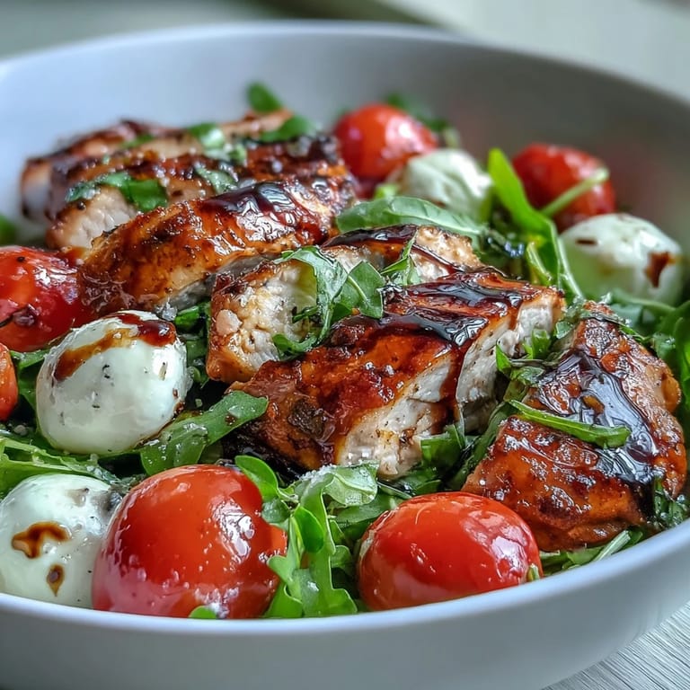 I brought this bowl to a potluck once and watched people come back for thirds, which isn't usually how these things go with salads. The combination of warm chicken against cool, creamy mozzarella and that dark, glossy reduction just works in a way that surprised even me. That's when I knew this wasn't just another lunch bowl—it was something worth coming back to.