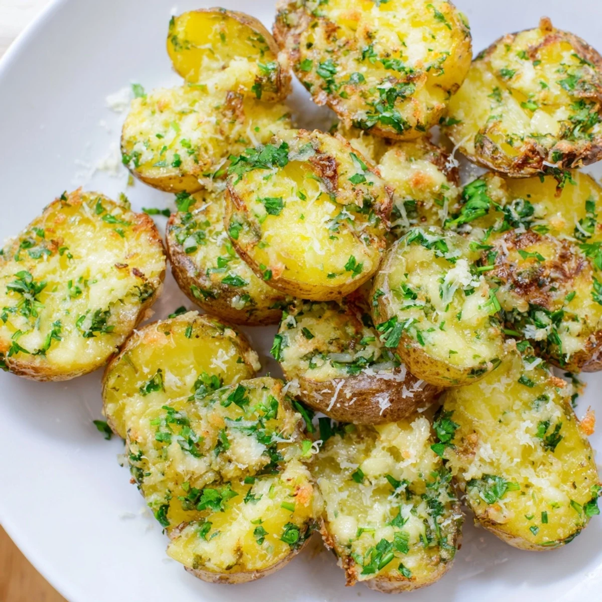 Pin this I threw these together on a Tuesday night when I had friends coming over and zero plan for sides. I had a bag of baby potatoes rolling around in the pantry and some Parmesan in the fridge, and I figured smashing things sounded therapeutic. Turns out, they were the only thing anyone wanted seconds of. The crispy edges with that garlic-butter situation? Unreal. Now they show up at least twice a month, sometimes just for me and a good show.