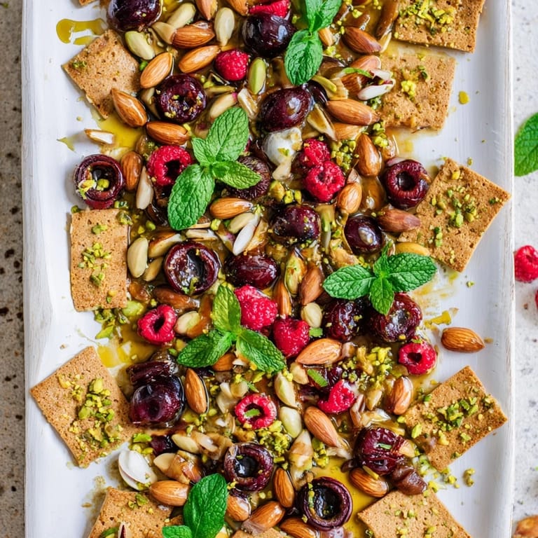 The beauty of this platter is how flexible it is—swap berries and nuts based on what you have or what's in season, and it still works beautifully. I've made versions with roasted pumpkin seeds instead of nuts for nut-free friends, added candied ginger for warmth, and even scattered small cubes of aged cheddar or dark chocolate depending on the vibe of the gathering.