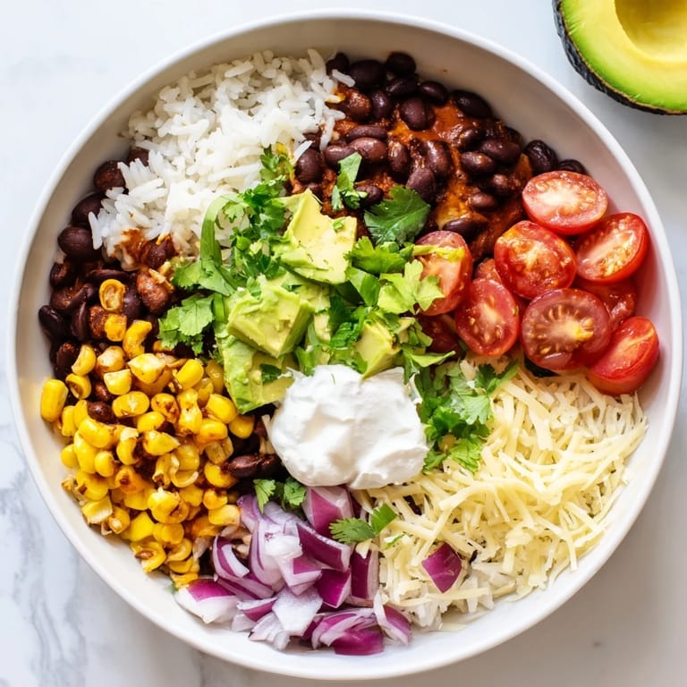 Pin this A vibrant, satisfying bowl featuring fluffy rice, hearty beans, sweet corn, and classic Tex-Mex toppings—perfect for a quick, flavorful meal.