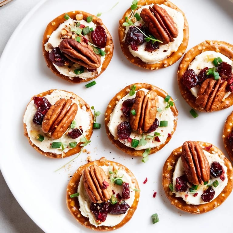 - Top each with a roasted pecan half, a sprinkle of chopped cranberries, and a pinch of diced jalapeño.