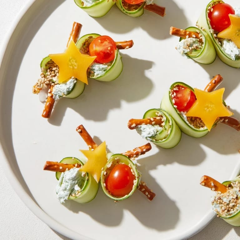 Pin this Celebrate the holidays with a burst of freshness and creativity by making Spiral Cucumber Ribbon Christmas Trees. These whimsical appetizers bring together crisp cucumber ribbons artfully shaped into festive trees, adorned with creamy herb-infused cheese, vibrant cherry tomatoes, and delicate fresh herbs. Perfect for a party starter, they impress guests with both beauty and flavor without any cooking involved.