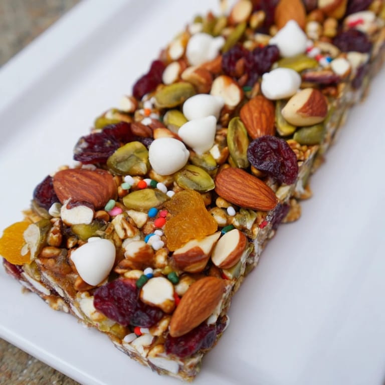 Pin this A festive, crunchy snack bar featuring a medley of nuts, seeds, dried fruits, and white chocolate—perfect for cozy winter days or holiday gatherings.